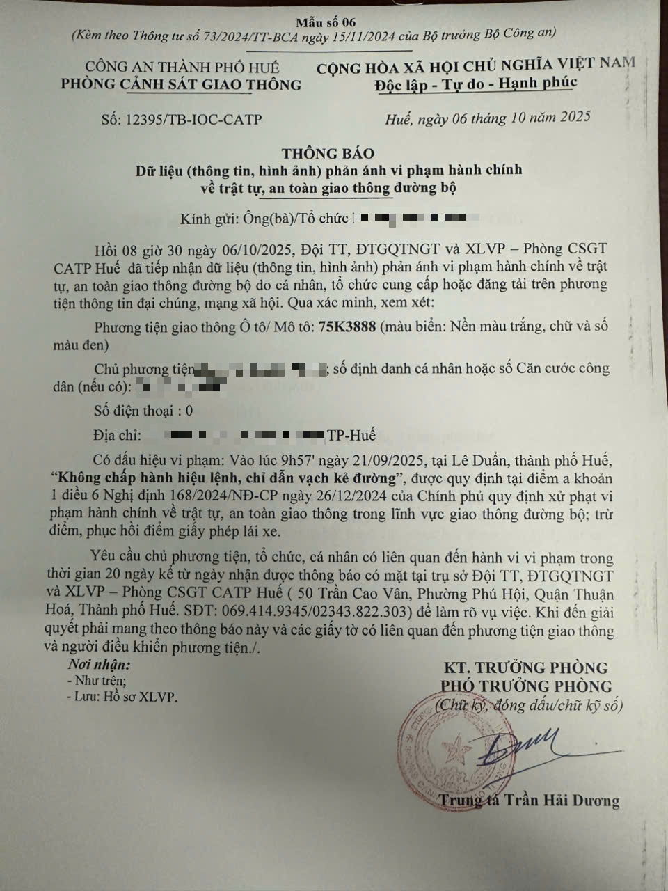 Vấn đề quý Ông/Bà phản ánh, Phòng Cảnh sát giao thông – Công an thành phố Huế đã kiểm tra và xin thông báo kết quả như sau: