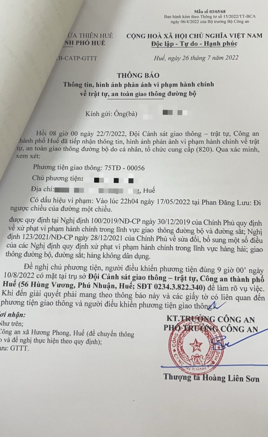 Vấn đề Ông/Bà phản ánh, Công an tỉnh đã chỉ đạo Công an thành phố Huế xin thông báo kết quả xử lý như sau: