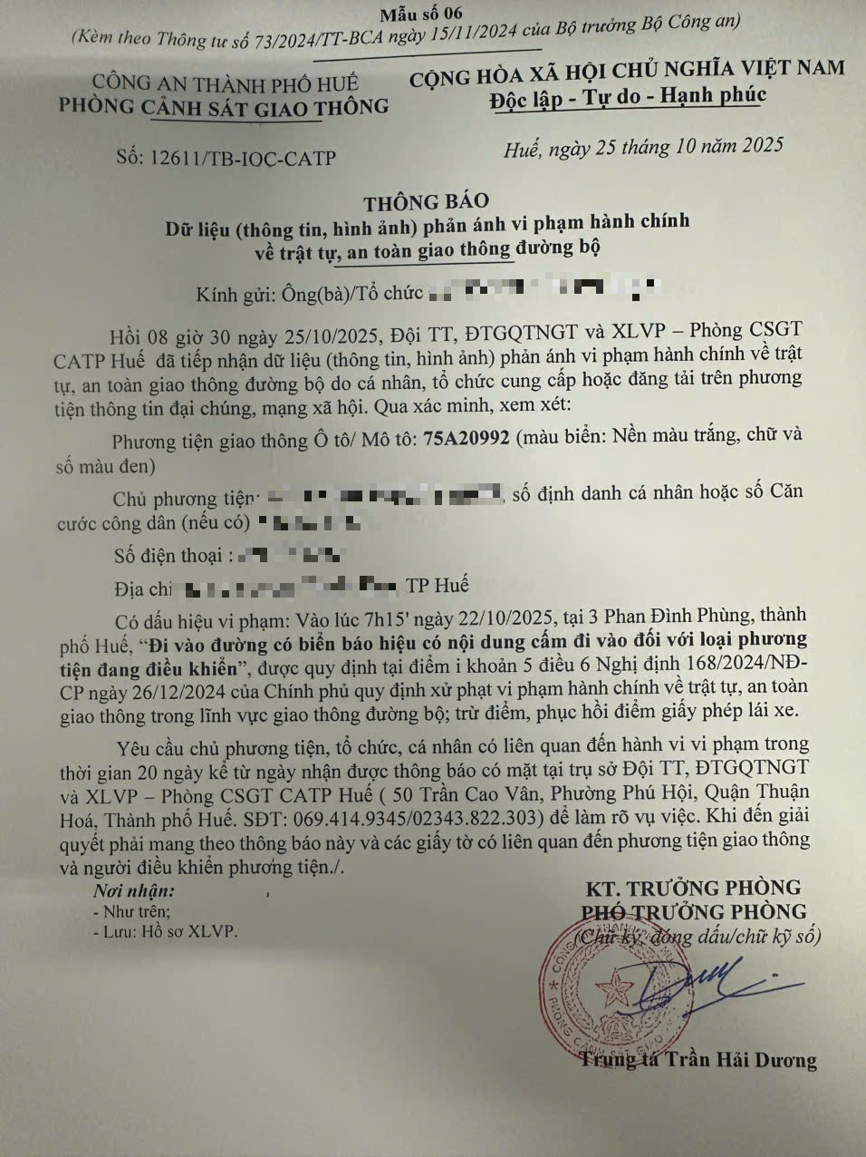 Vấn đề quý Ông/Bà phản ánh, Phòng Cảnh sát giao thông – Công an thành phố Huế đã kiểm tra và xin thông báo kết quả như sau: