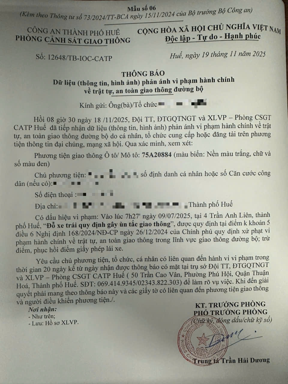 Vấn đề quý Ông/Bà phản ánh, Phòng Cảnh sát giao thông – Công an thành phố Huế đã kiểm tra và xin thông báo kết quả như sau: