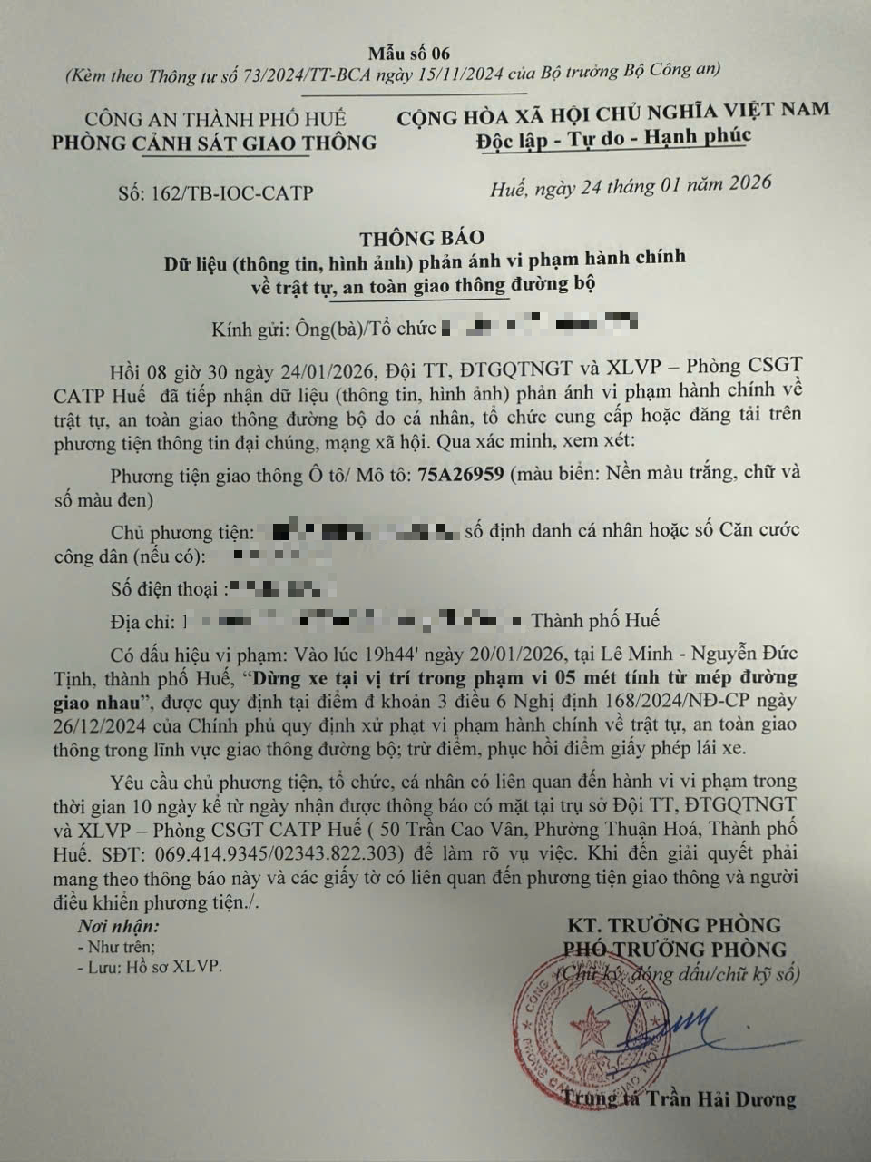 Vấn đề quý Ông/Bà phản ánh, Phòng Cảnh sát giao thông – Công an thành phố Huế đã kiểm tra và xin thông báo kết quả như sau: