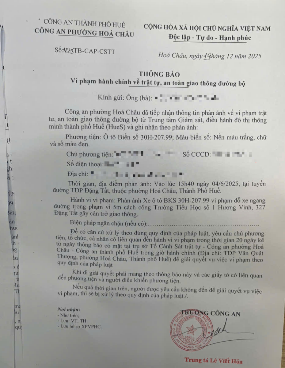 Công an phường Hóa Châu đã lập hồ sơ, thông báo chủ phương tiện đến làm việc. Tuy nhiên hiện chủ phương tiện vẫn chưa trình diện tại cơ quan. Công an phường sẽ gửi thông báo cho cơ quan đăng kiểm để đưa phương tiện vào cảnh báo trên Chương trình Quản lý kiểm định.