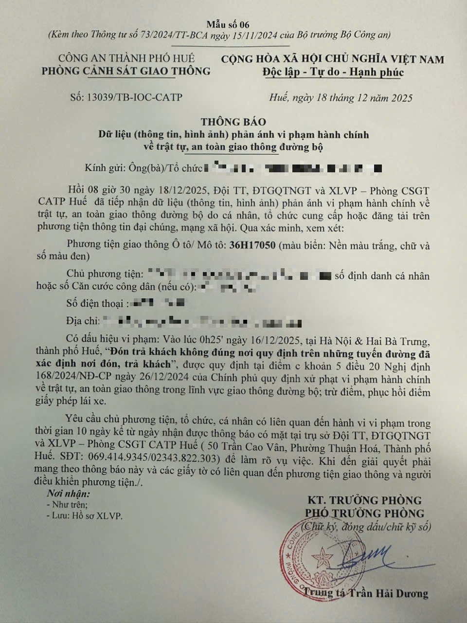 Vấn đề quý Ông/Bà phản ánh, Phòng Cảnh sát giao thông – Công an thành phố Huế đã kiểm tra và xin thông báo kết quả như sau: