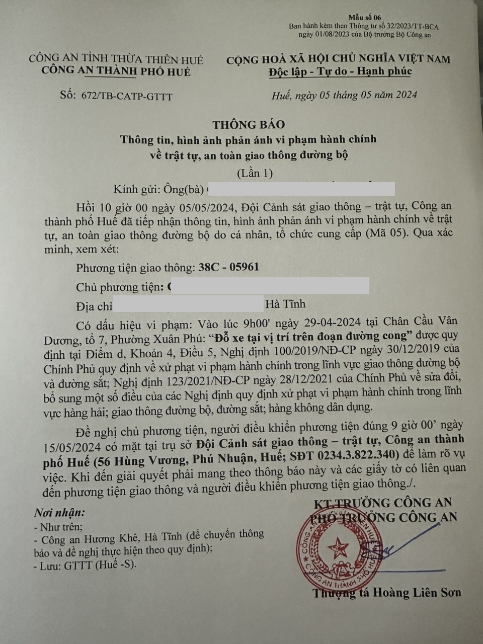 Vấn đề quý Ông/Bà phản ánh, Công an thành phố Huế đã kiểm tra và xin thông báo kết quả như sau: