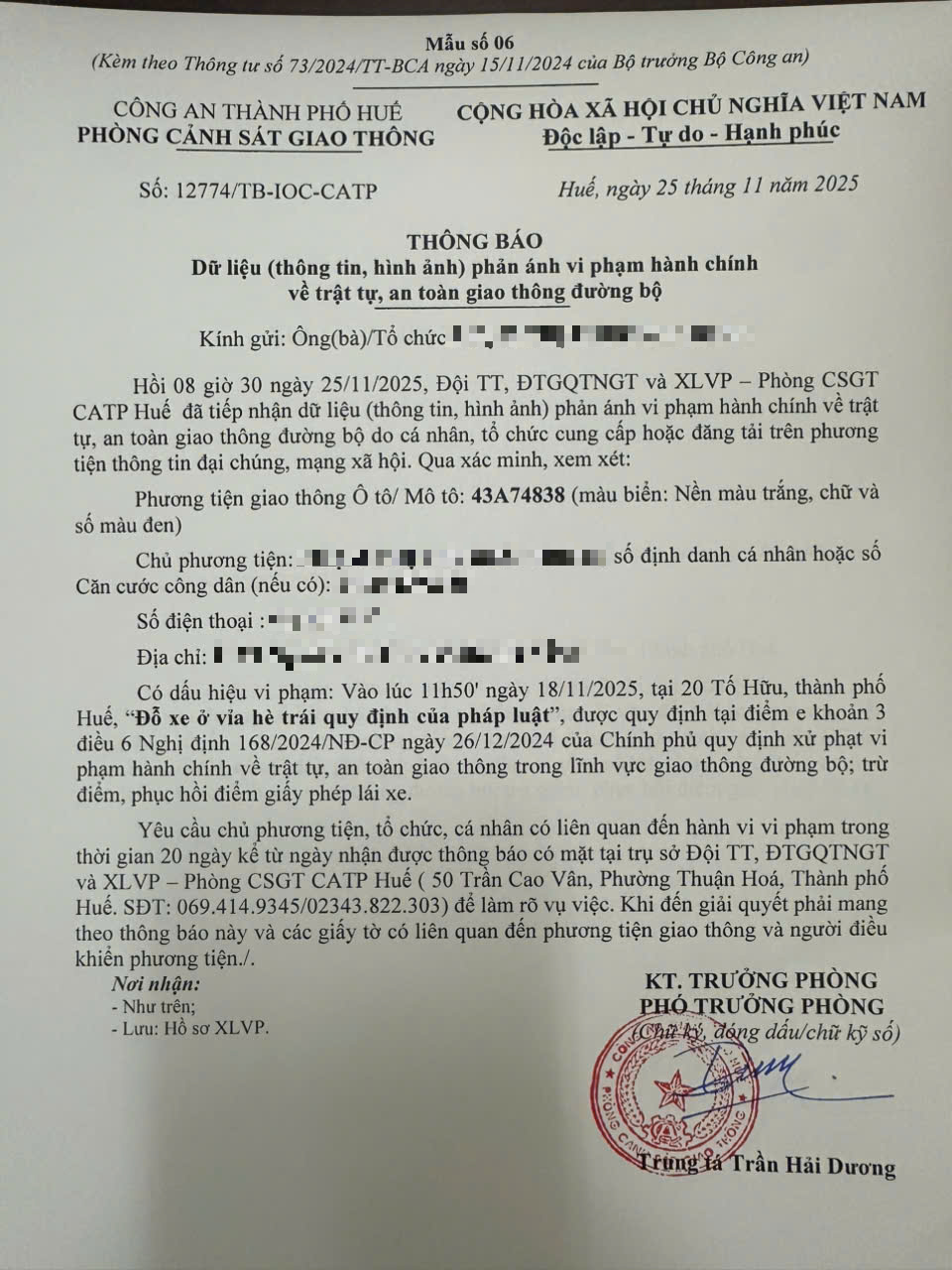 Vấn đề quý Ông/Bà phản ánh, Phòng Cảnh sát giao thông – Công an thành phố Huế đã kiểm tra và xin thông báo kết quả như sau: