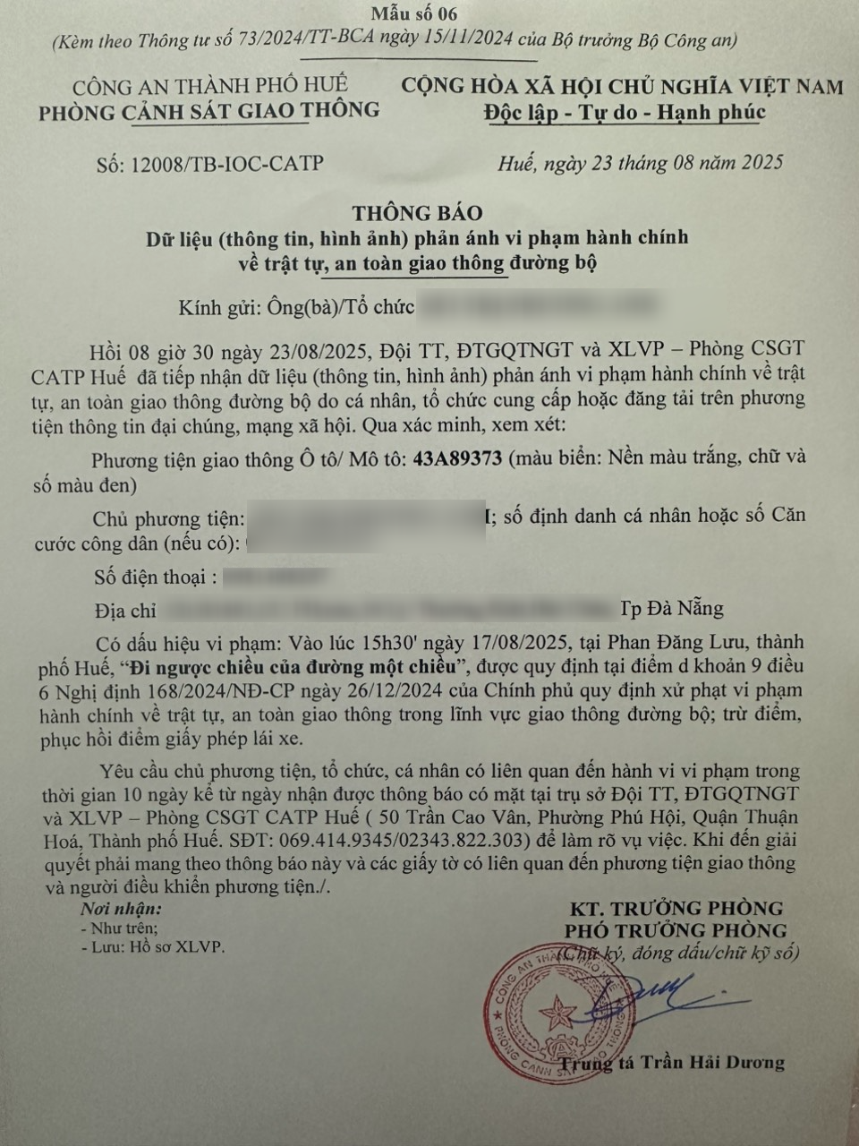 Vấn đề quý Ông/Bà phản ánh, Phòng Cảnh sát giao thông – Công an thành phố Huế đã kiểm tra và xin thông báo kết quả như sau: