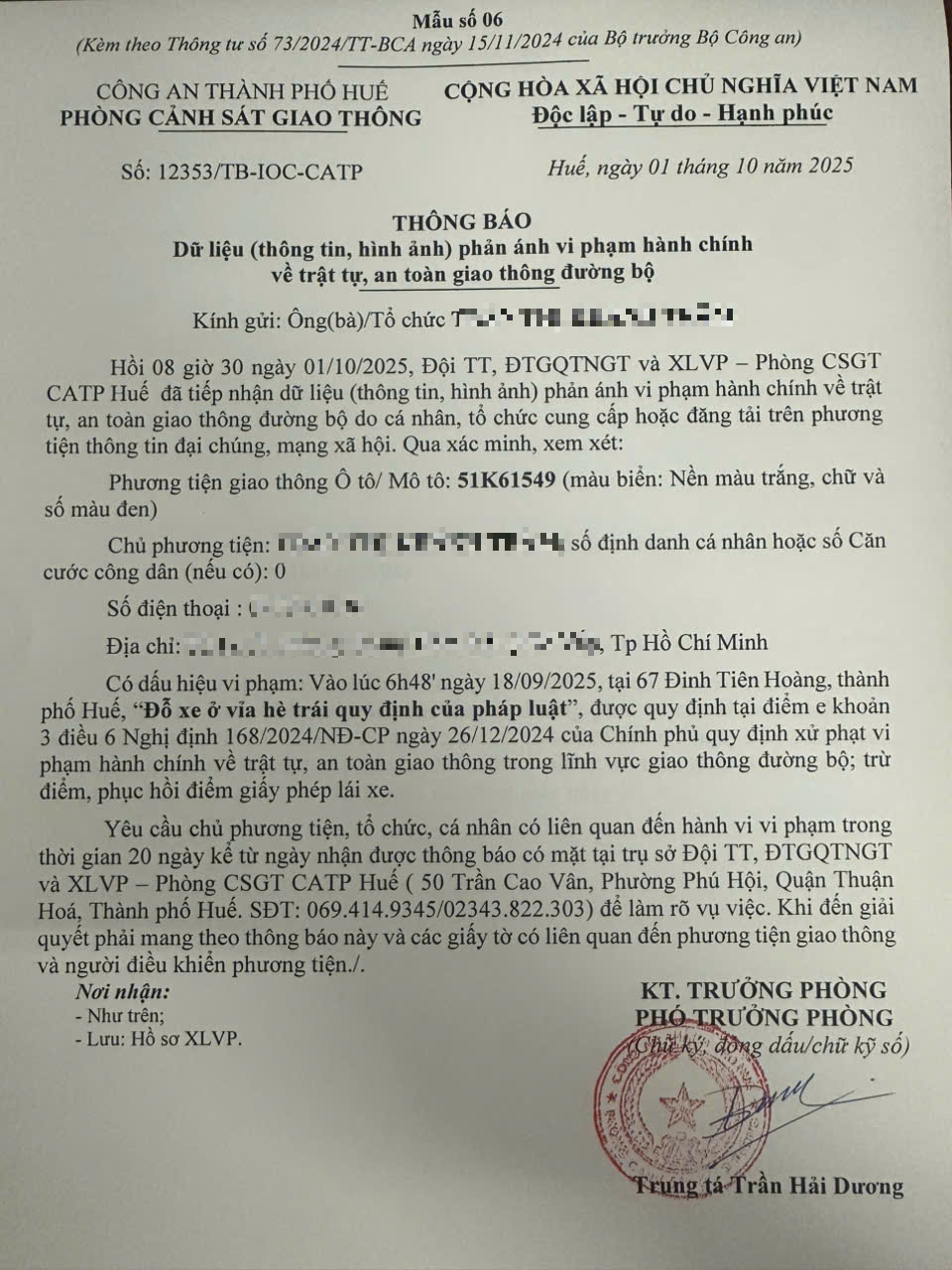 Vấn đề quý Ông/Bà phản ánh, Phòng Cảnh sát giao thông – Công an thành phố Huế đã kiểm tra và xin thông báo kết quả như sau: