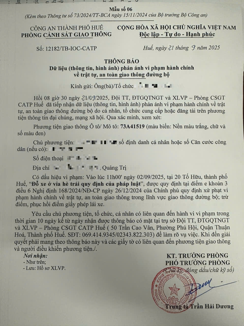 Vấn đề quý Ông/Bà phản ánh, Phòng Cảnh sát giao thông – Công an thành phố Huế đã kiểm tra và xin thông báo kết quả như sau: