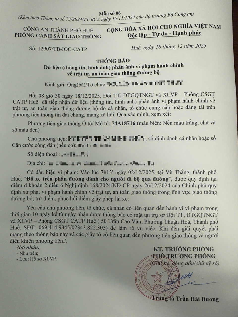 Vấn đề quý Ông/Bà phản ánh, Phòng Cảnh sát giao thông – Công an thành phố Huế đã kiểm tra và xin thông báo kết quả như sau: