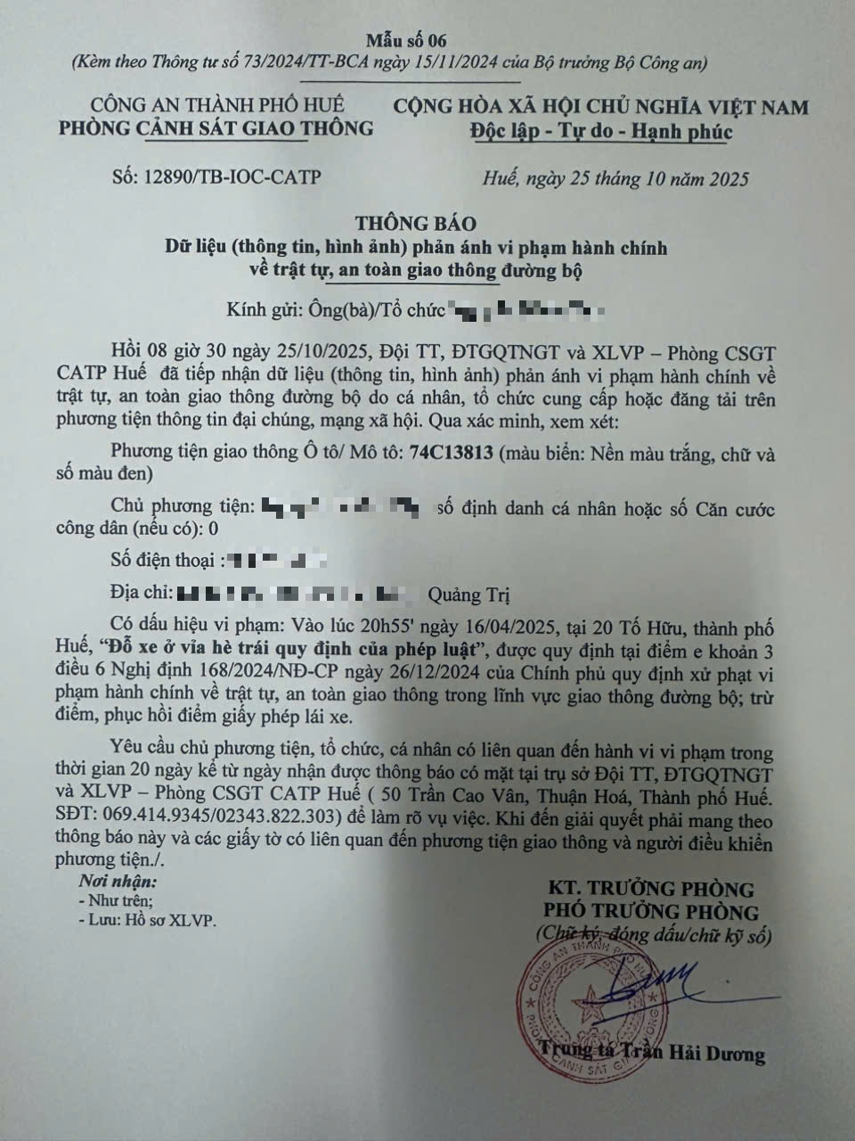 Vấn đề quý Ông/Bà phản ánh, Phòng Cảnh sát giao thông – Công an thành phố Huế đã kiểm tra và xin thông báo kết quả như sau: