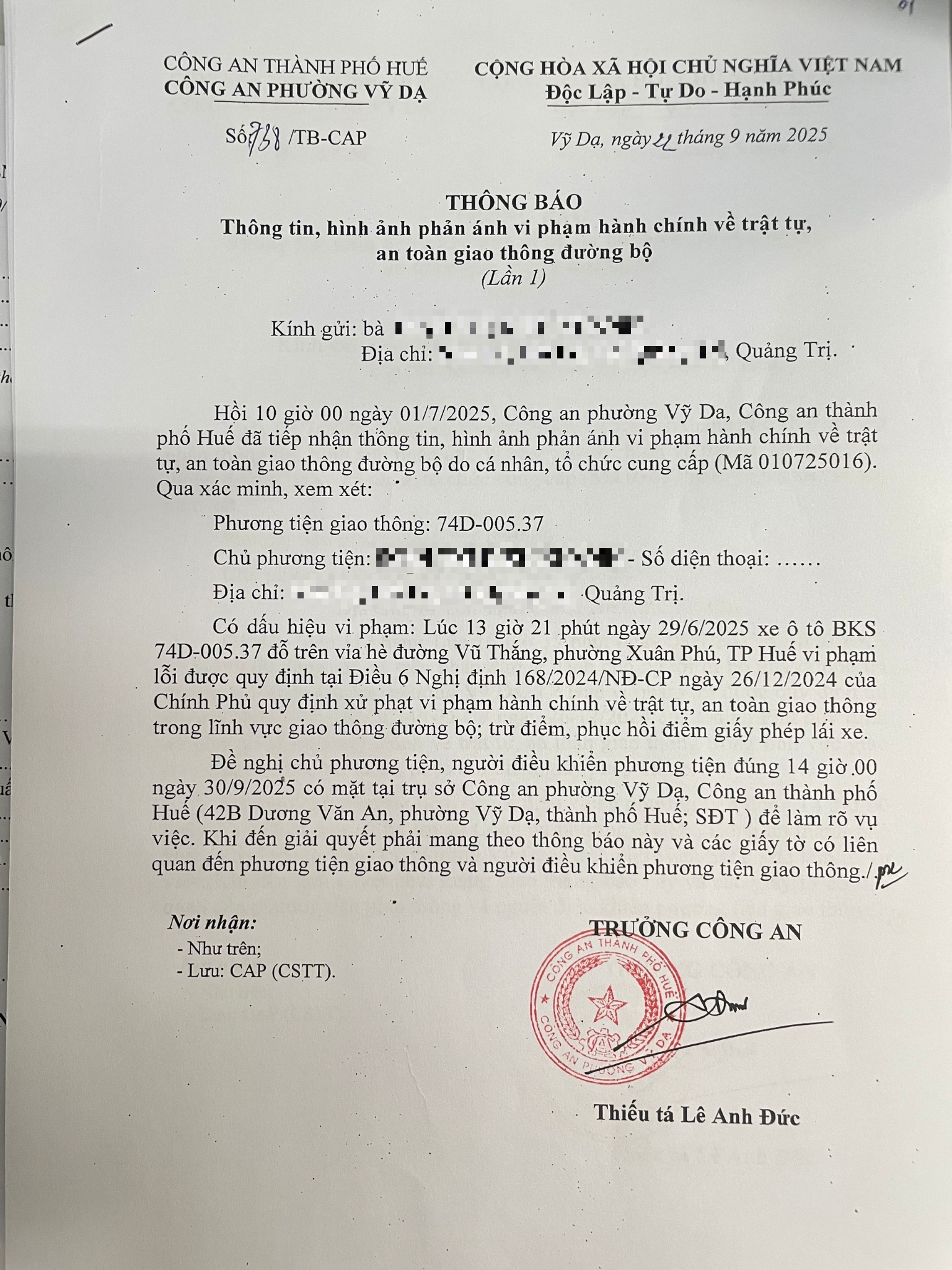 Vấn đề quý Ông/Bà phản ánh, Công an thành phố Huế đã chỉ đạo Công an phường Vỹ Dạ kiểm tra và xin thông báo kết quả như sau: