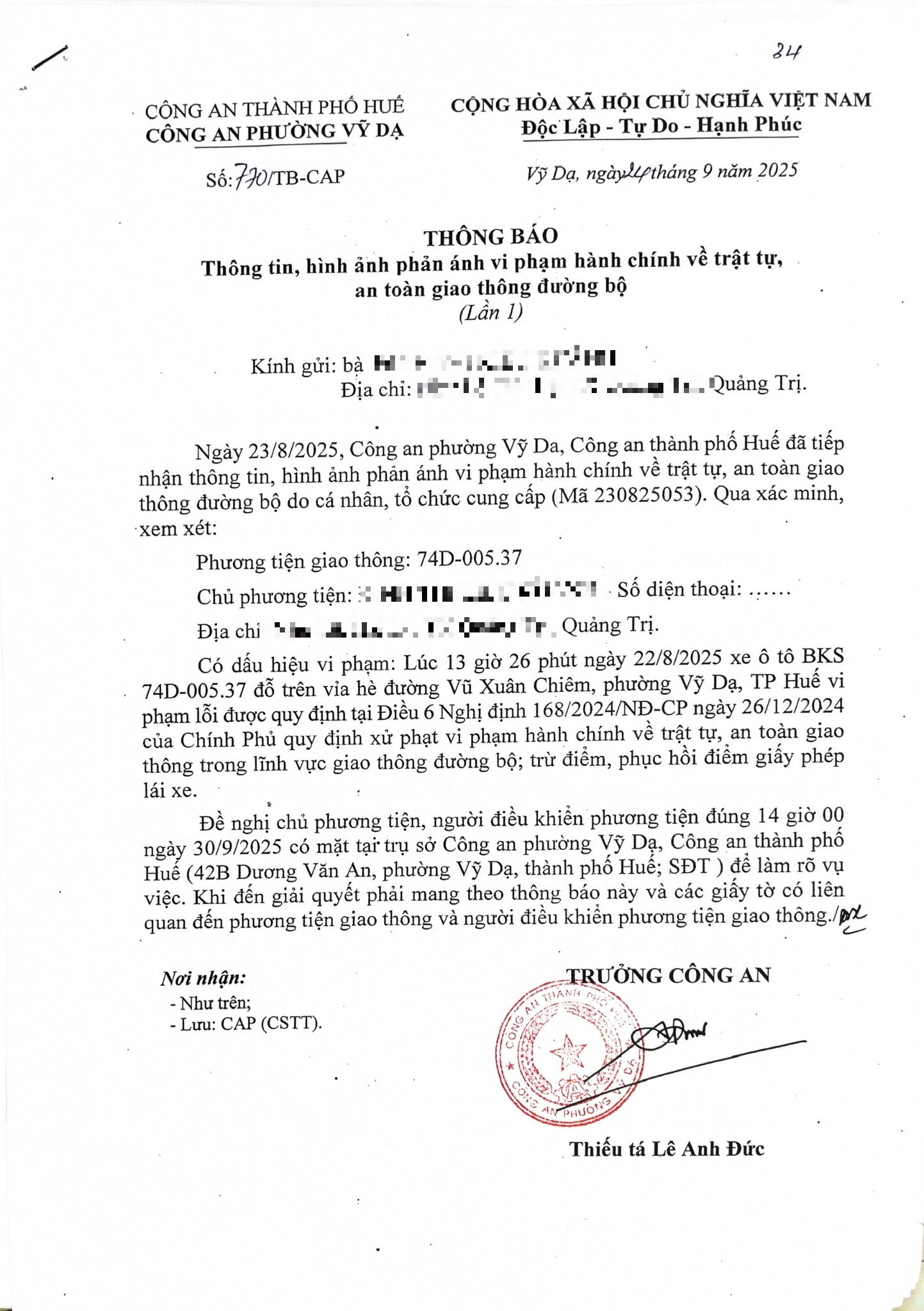 Vấn đề quý Ông/Bà phản ánh, Công an thành phố Huế đã chỉ đạo Công an phường Vỹ Dạ kiểm tra và xin thông báo kết quả như sau: