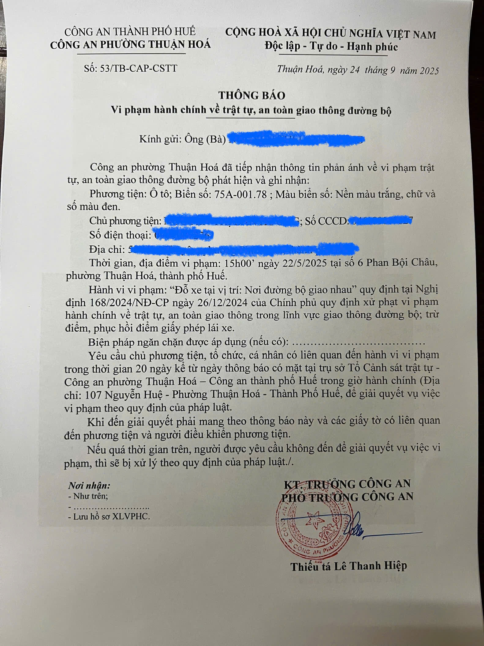 Công an phường Thuận Hóa đã lập hồ sơ, thông báo chủ phương tiện đến làm việc. Nếu quá ngày hẹn mà chủ phương tiện vẫn chưa đến trình diện tại cơ quan. Công an phường Thuận Hóa sẽ gửi thông báo cho cơ quan đăng kiểm để đưa phương tiện vào cảnh báo trên Chương trình Quản lý kiểm định.
