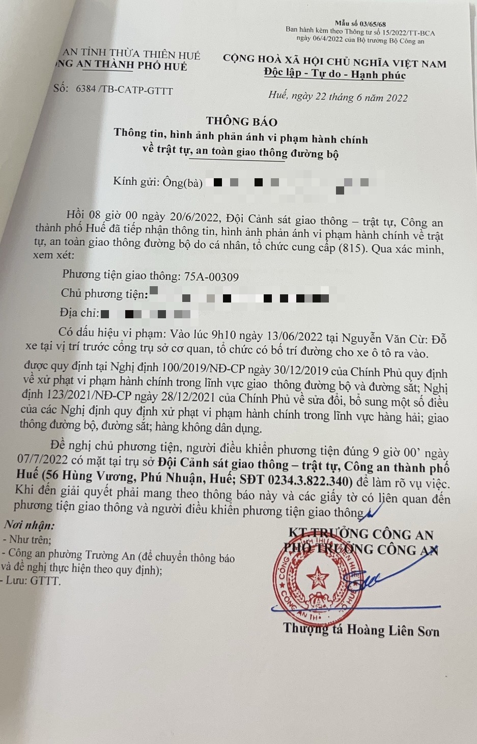 Vấn đề Ông/Bà phản ánh, Công an tỉnh đã chỉ đạo Công an thành phố Huế kiểm tra và trả lời như sau: