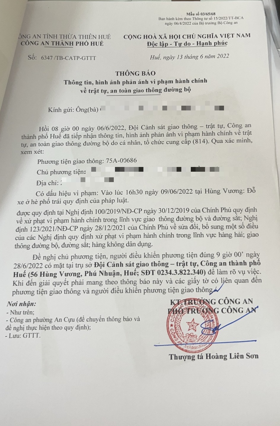 Công an thành phố đã lập hồ sơ, thông báo chủ phương tiện đến làm việc vào ngày 28/6/2022. Tuy nhiên, hiện chủ phương tiện vẫn chưa trình diện tại cơ quan. Công an thành phố sẽ gửi thông báo cho cơ quan đăng kiểm để đưa phương tiện vào cảnh báo trên Chương trình Quản lý kiểm định.
