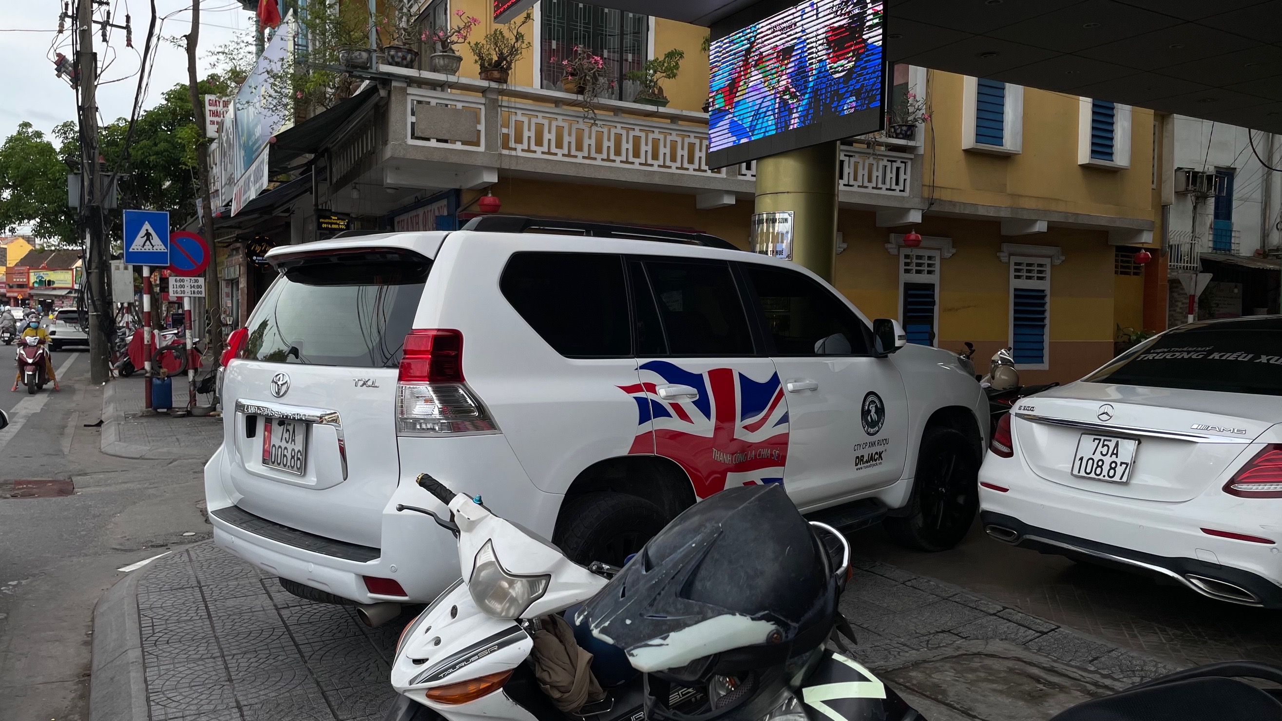 Từ hình ảnh được cung cấp, xác định người điều khiển phương tiện 75A00686 vi phạm lỗi: Đỗ xe ở hè phố trái quy định của pháp luật (quy định tại điểm e, khoản 3, Điều 5 Nghị định 100/2019/NĐ-CP, sửa đổi, bổ sung tại Nghị định 123/2021/NĐ-CP).