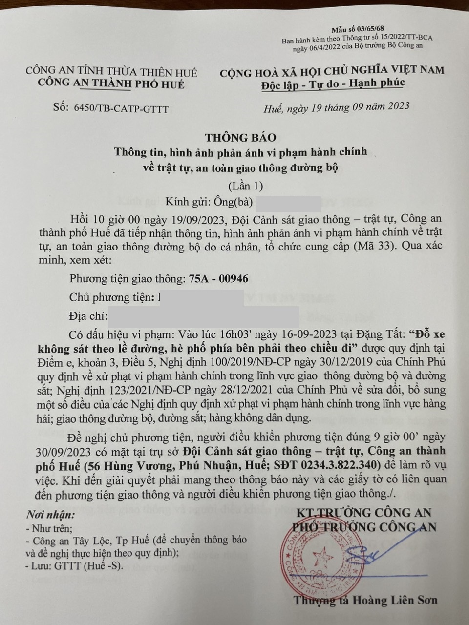 Vấn đề quý Ông/Bà phản ánh, Công an tỉnh đã chỉ đạo Công an thành phố Huế xác minh và xin thông báo kết quả như sau: