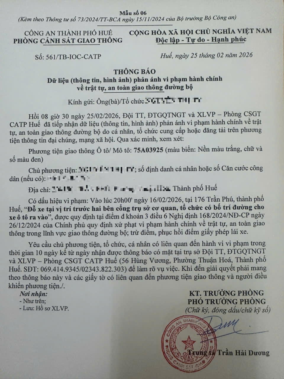Vấn đề quý Ông/Bà phản ánh, Phòng Cảnh sát giao thông - Công an thành phố Huế đã kiểm tra và xin thông báo kết quả như sau: