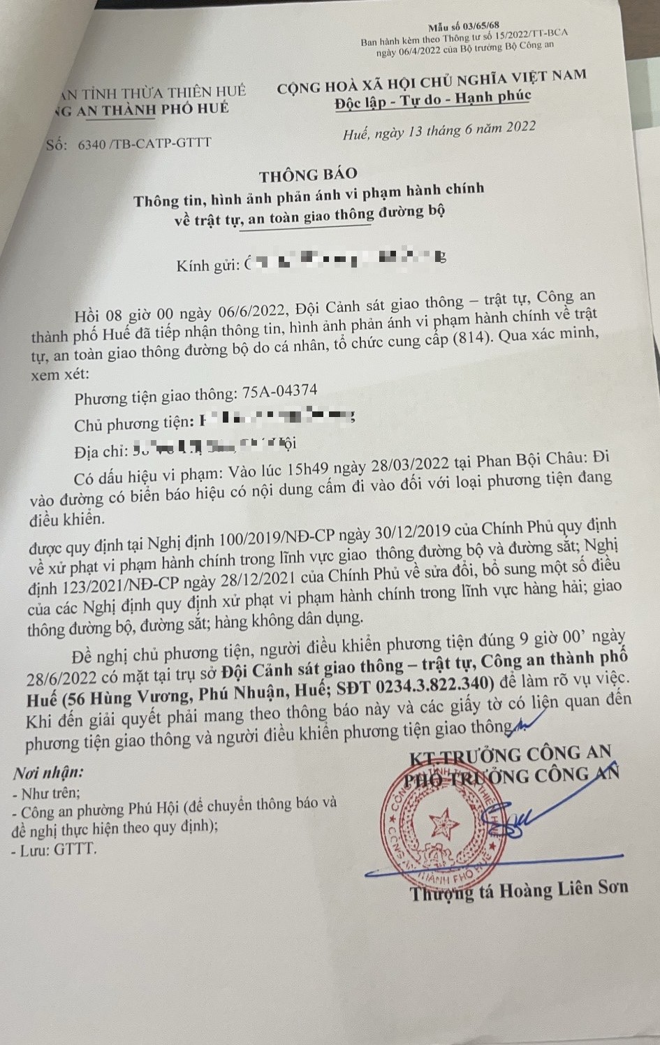 Vấn đề Ông/Bà phản ánh, Công an tỉnh đã chỉ đạo Công an thành phố Huế kiểm tra và trả lời như sau: