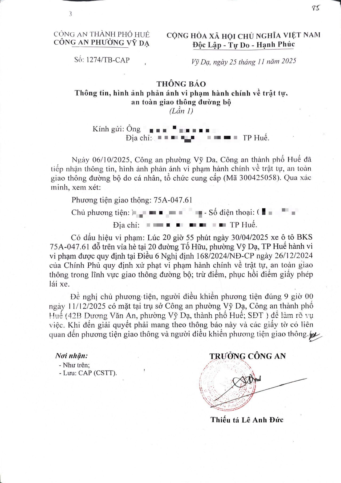 Vấn đề quý Ông/Bà phản ánh, Công an thành phố Huế đã chỉ đạo Công an phường Vỹ Dạ kiểm tra và xin thông báo kết quả như sau: