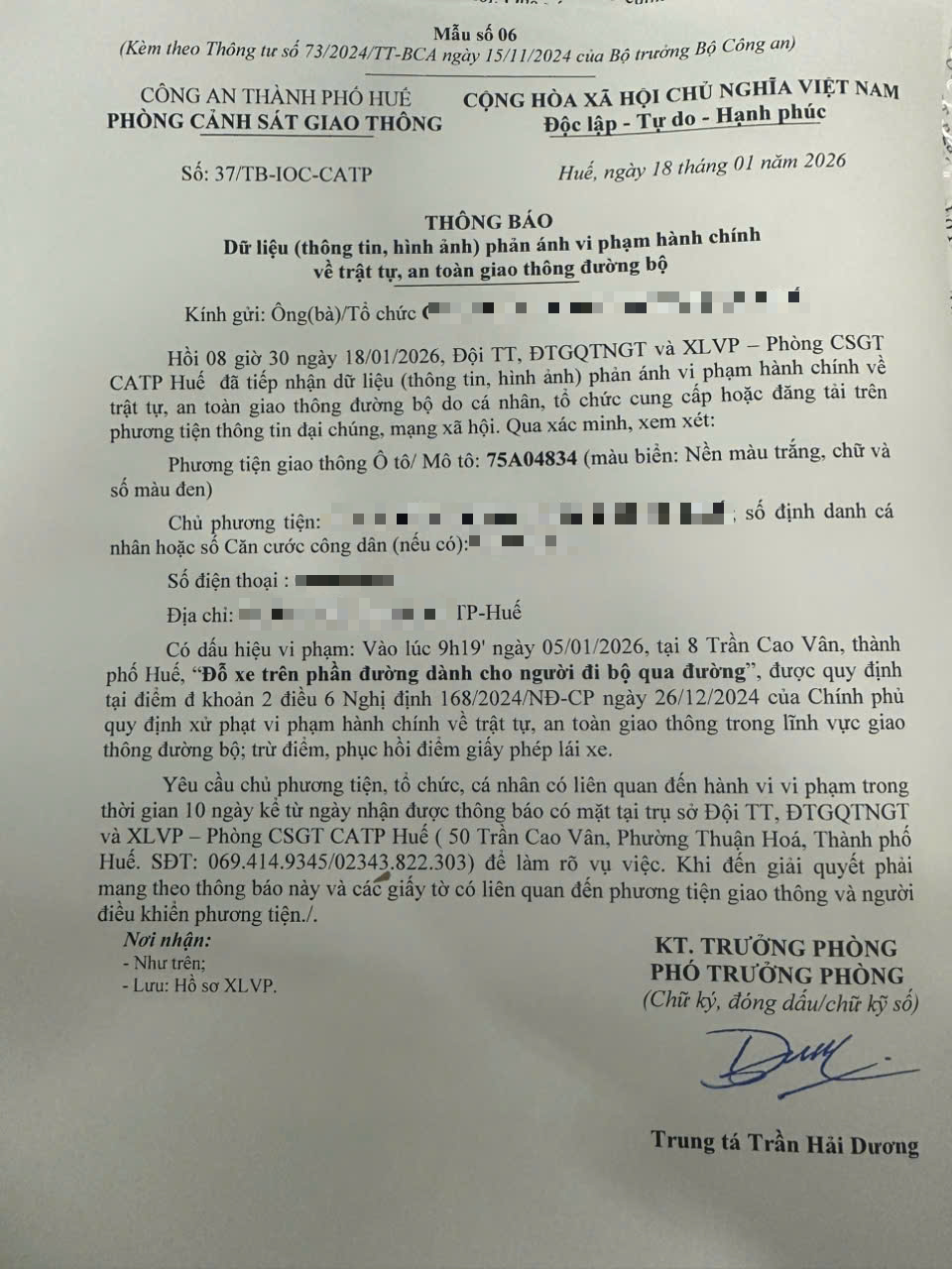 Qua hình ảnh phản ánh, người điều khiển phương tiện BKS 75A37501 và 75A04834 có dấu hiệu vi phạm lỗi: Đỗ xe trên phần đường dành cho người đi bộ qua đường, quy định tại điểm đ, khoản 2, điều 6 Nghị định số 168/2024/NĐ-CP ngày 26/12/2024 của Chính phủ quy định xử phạt vi phạm hành chính về trật tự, an toàn giao thông trong lĩnh vực giao thông đường bộ; trừ điểm, phục hồi điểm giấy phép lái xe.