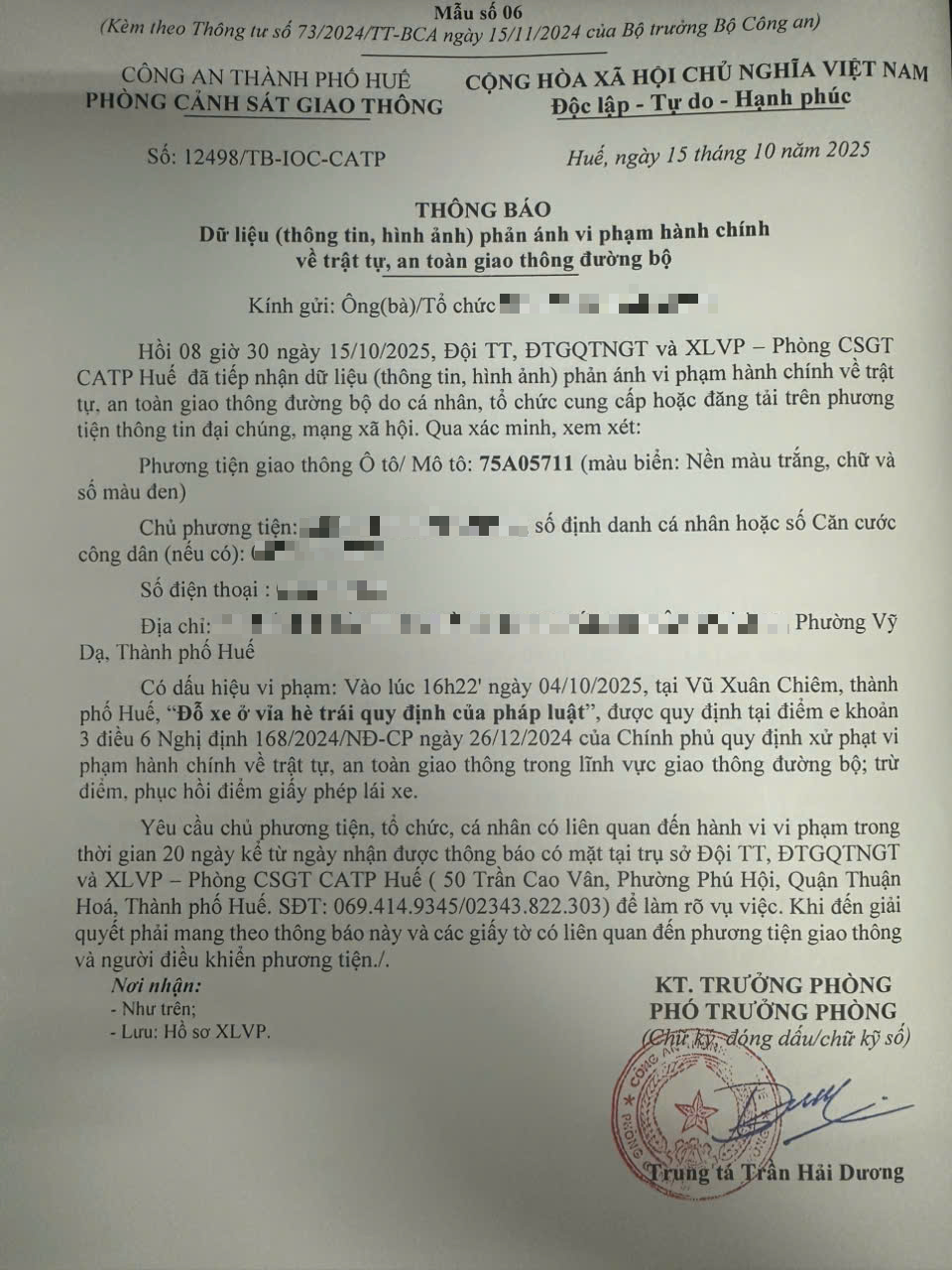 Vấn đề quý Ông/Bà phản ánh, Phòng Cảnh sát giao thông – Công an thành phố Huế đã kiểm tra và xin thông báo kết quả như sau: