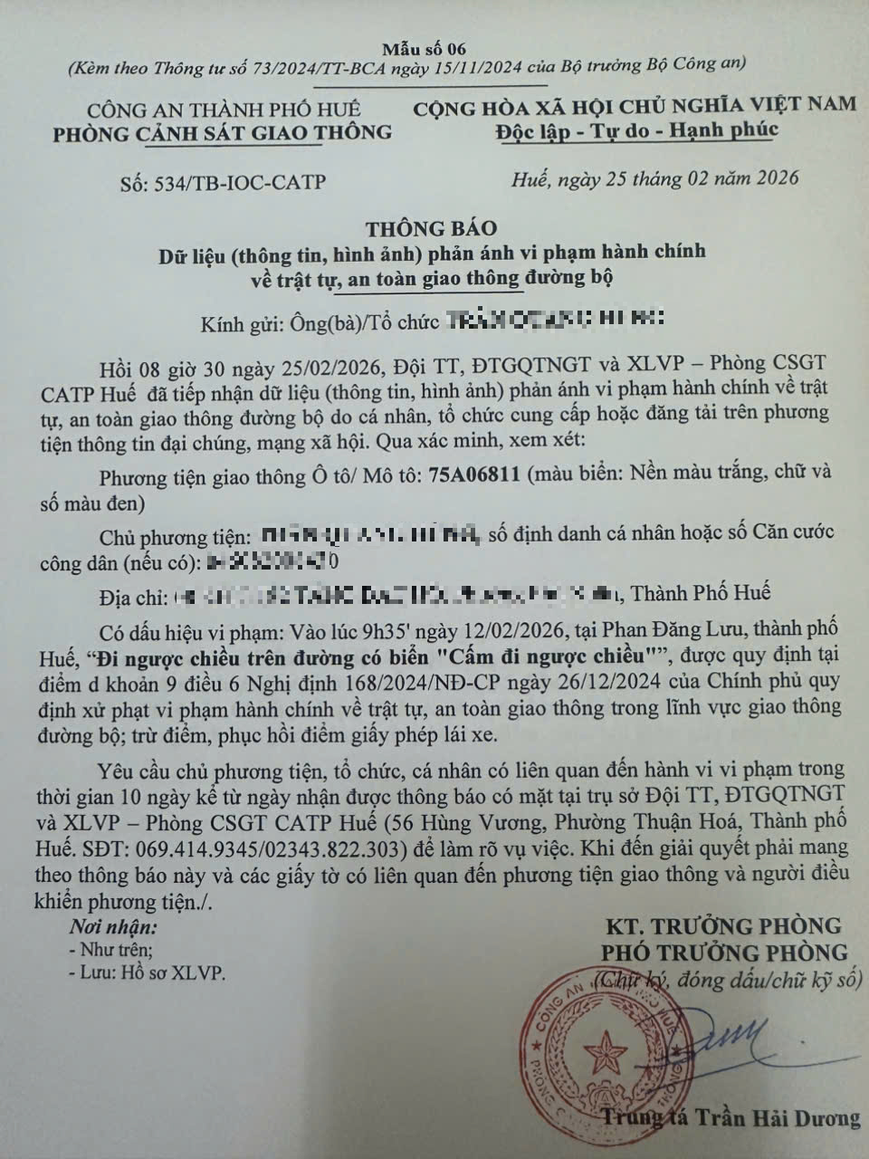 Vấn đề quý Ông/Bà phản ánh, Phòng Cảnh sát giao thông - Công an thành phố Huế đã kiểm tra và xin thông báo kết quả như sau: