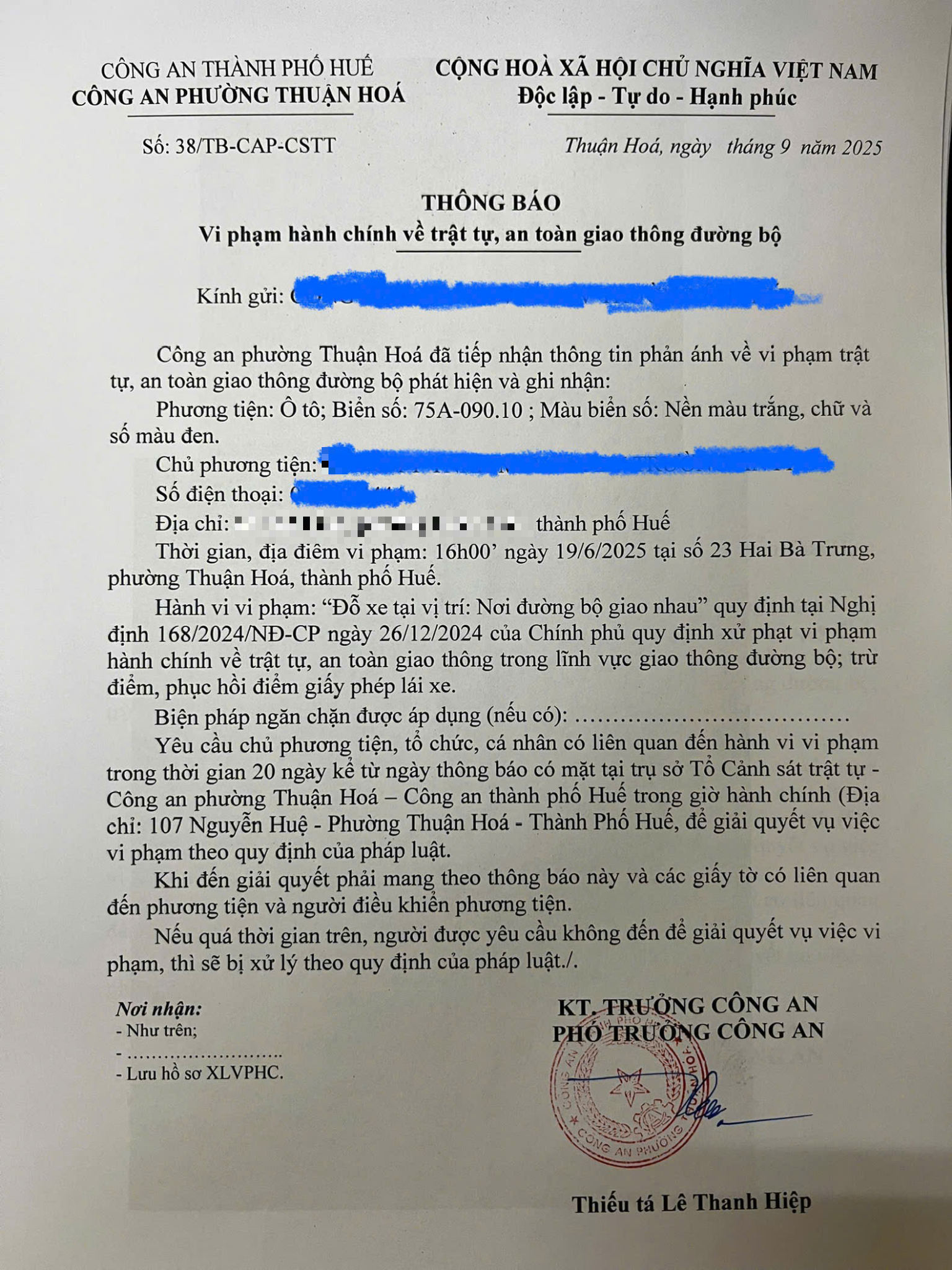Công an phường Thuận Hóa đã lập hồ sơ, thông báo chủ phương tiện đến làm việc. Nếu quá ngày hẹn mà chủ phương tiện vẫn chưa đến trình diện tại cơ quan. Công an phường Thuận Hóa sẽ gửi thông báo cho cơ quan đăng kiểm để đưa phương tiện vào cảnh báo trên Chương trình Quản lý kiểm định.