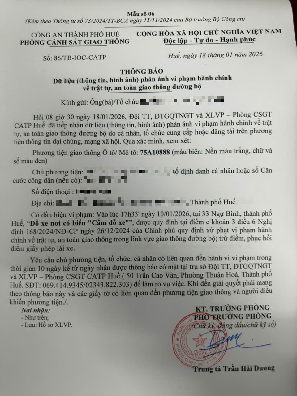 Vấn đề quý Ông/Bà phản ánh, Phòng Cảnh sát giao thông – Công an thành phố Huế đã kiểm tra và xin thông báo kết quả như sau: