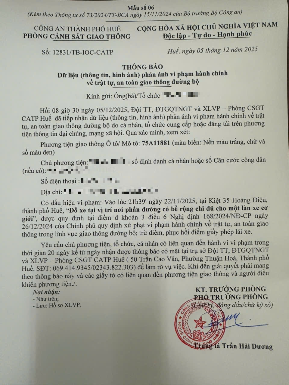 Vấn đề quý Ông/Bà phản ánh, Phòng Cảnh sát giao thông – Công an thành phố Huế đã kiểm tra và xin thông báo kết quả như sau: