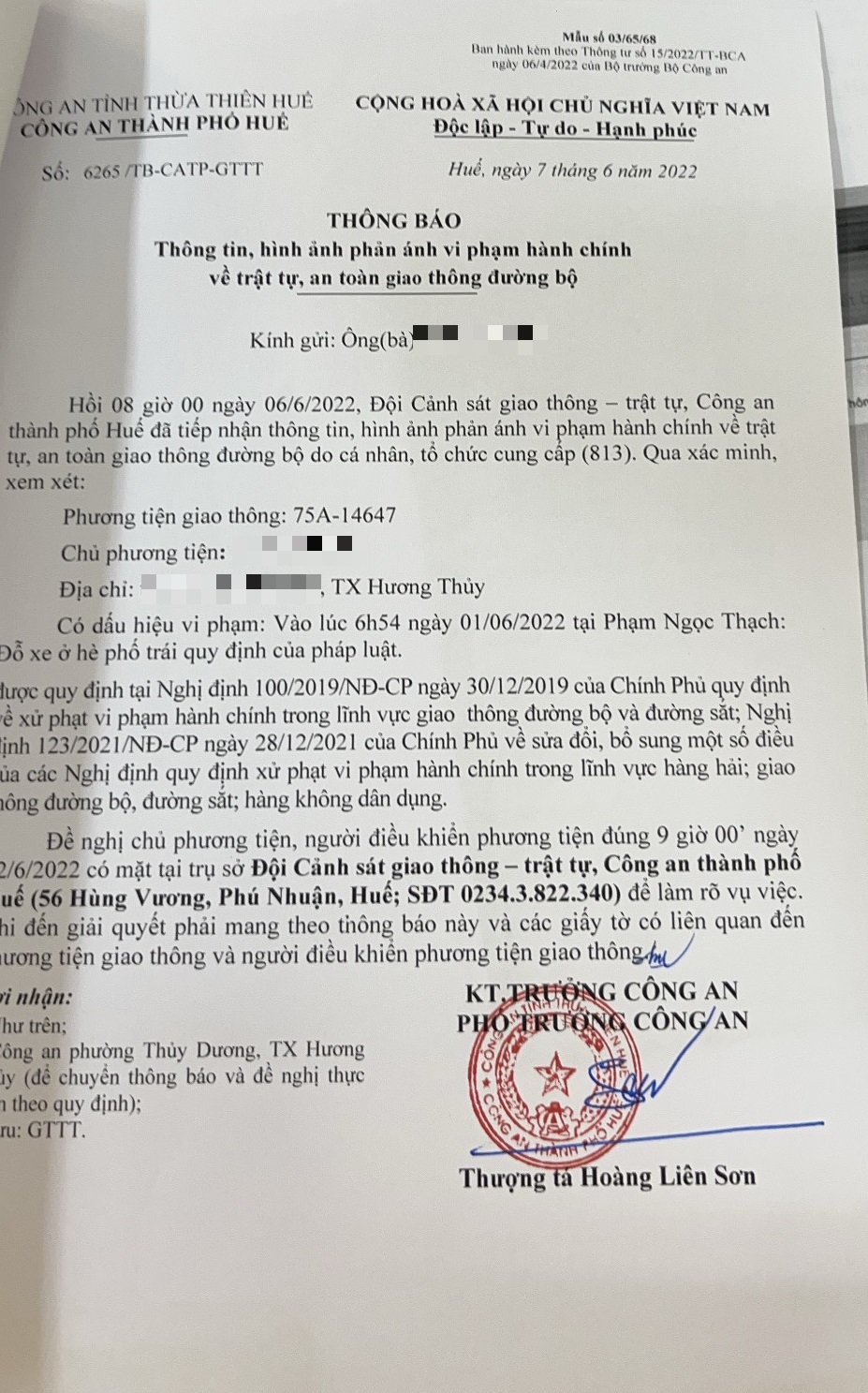 Công an thành phố đã lập hồ sơ, thông báo chủ phương tiện đến làm việc vào ngày 22/6/2022. Tuy nhiên, hiện chủ phương tiện vẫn chưa trình diện tại cơ quan. Công an thành phố sẽ gửi thông báo cho cơ quan đăng kiểm để đưa phương tiện vào cảnh báo trên Chương trình Quản lý kiểm định.