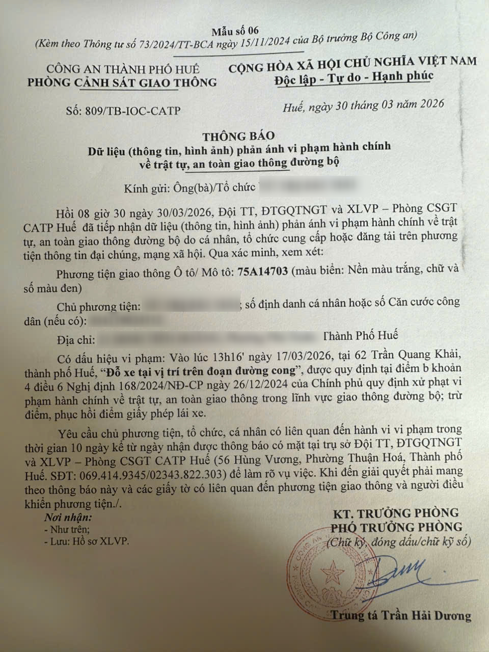 Vấn đề quý Ông/Bà phản ánh, Công an thành phố Huế đã chỉ đạo Phòng Cảnh sát giao thông xác minh và xin thông báo kết quả như sau: