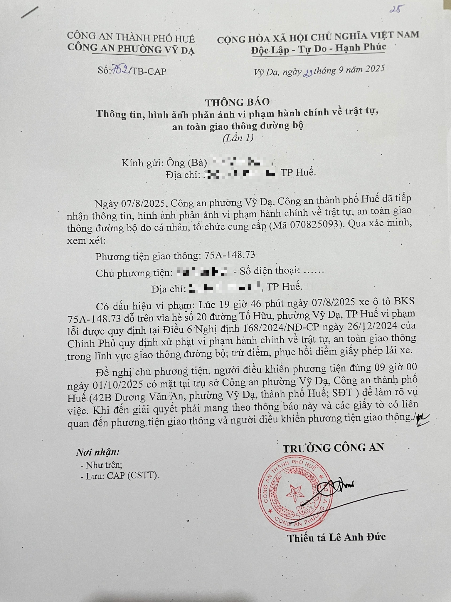 Vấn đề quý Ông/Bà phản ánh, Công an thành phố Huế đã chỉ đạo Công an phường Vỹ Dạ kiểm tra và xin thông báo kết quả như sau: