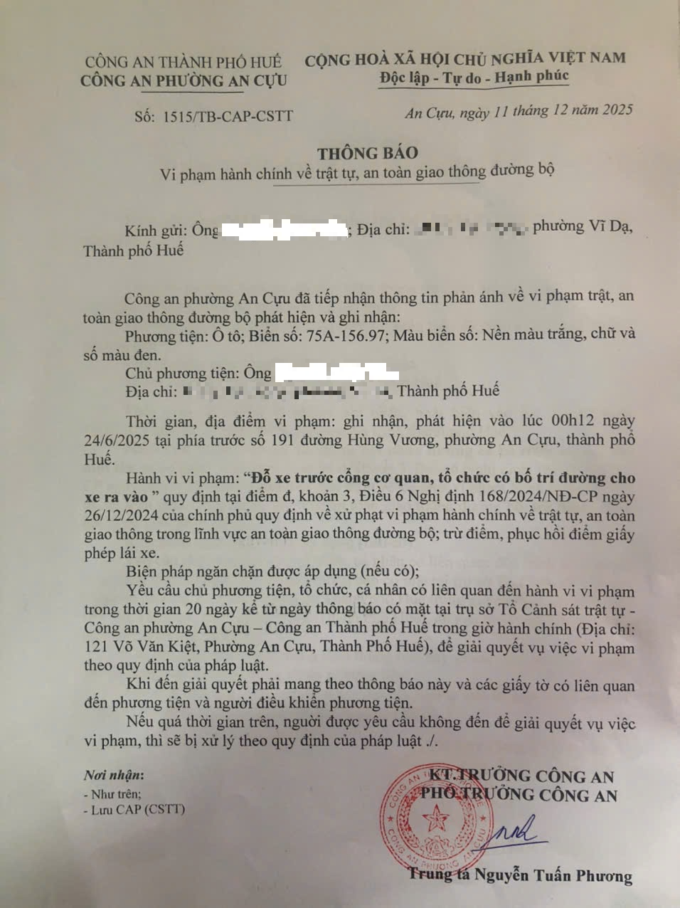 Vấn đề quý Ông/Bà phản ánh, Công an thành phố Huế đã chỉ đạo Công an phường Vỹ Dạ kiểm tra và xin thông báo kết quả như sau: