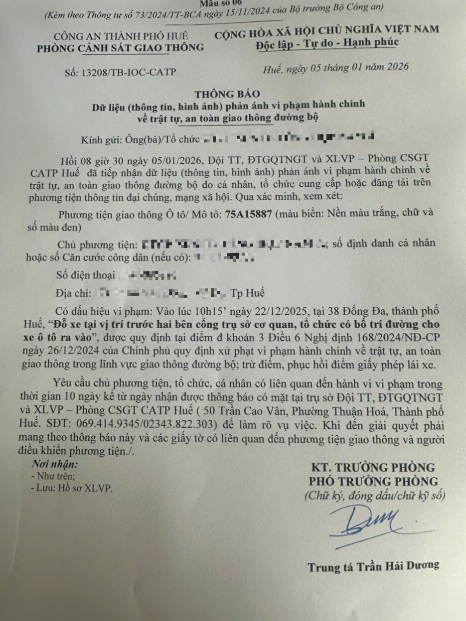 Vấn đề quý Ông/Bà phản ánh, Phòng Cảnh sát giao thông – Công an thành phố Huế đã kiểm tra và xin thông báo kết quả như sau:
