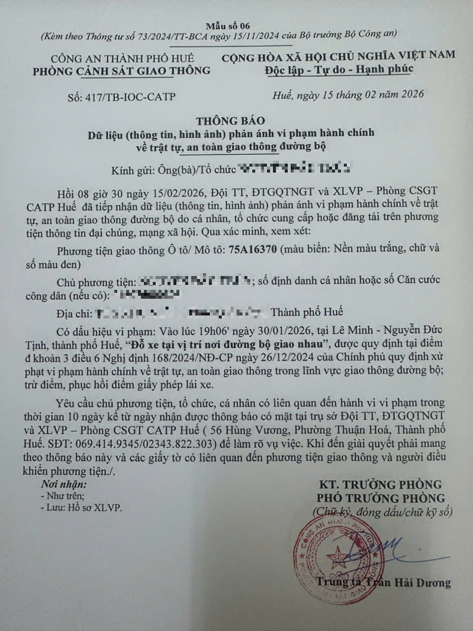 Vấn đề quý Ông/Bà phản ánh, Phòng Cảnh sát giao thông – Công an thành phố Huế đã kiểm tra và xin thông báo kết quả như sau:
