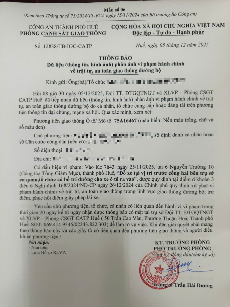 Vấn đề quý Ông/Bà phản ánh, Phòng Cảnh sát giao thông – Công an thành phố Huế đã kiểm tra và xin thông báo kết quả như sau: