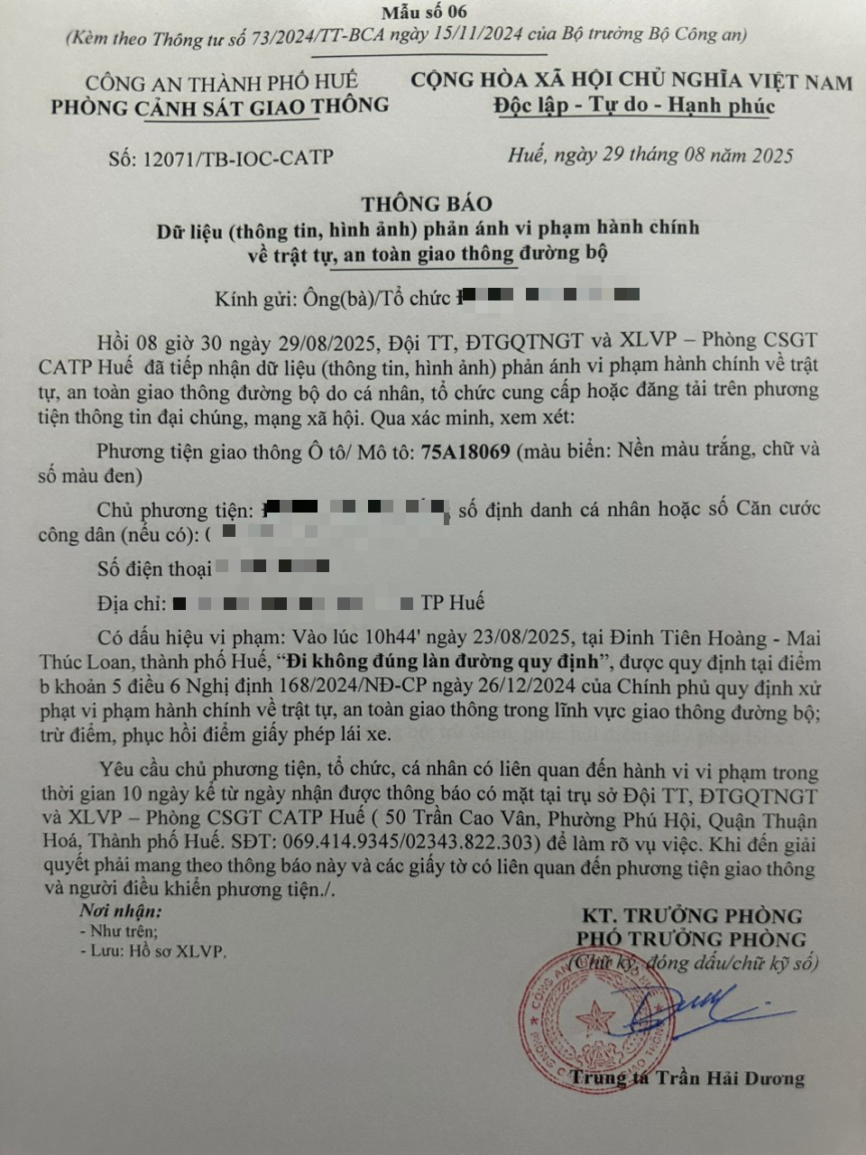 Vấn đề quý Ông/Bà phản ánh, Phòng Cảnh sát giao thông – Công an thành phố Huế đã kiểm tra và xin thông báo kết quả như sau: