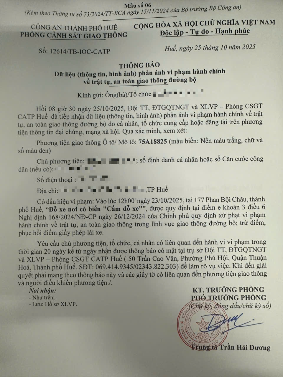 Vấn đề quý Ông/Bà phản ánh, Phòng Cảnh sát giao thông – Công an thành phố Huế đã kiểm tra và xin thông báo kết quả như sau: