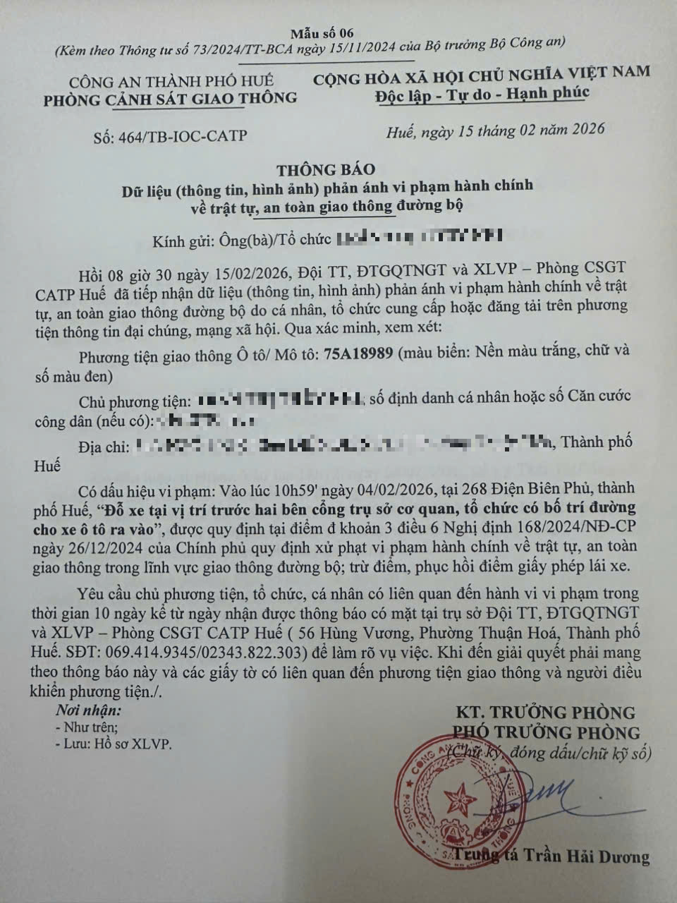 Vấn đề quý Ông/Bà phản ánh, Phòng Cảnh sát giao thông – Công an thành phố Huế đã kiểm tra và xin thông báo kết quả như sau: