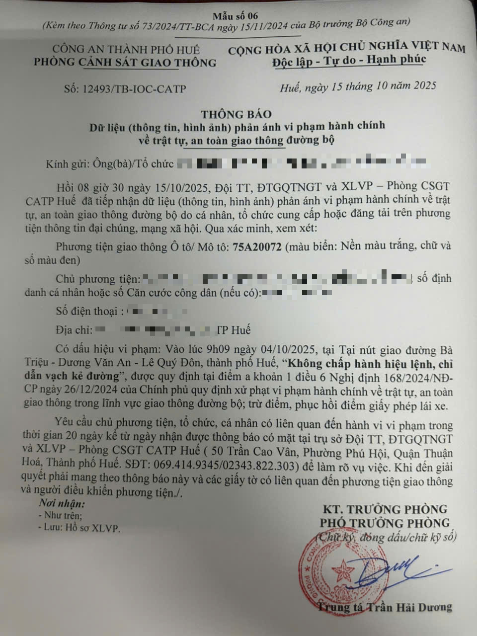 Vấn đề quý Ông/Bà phản ánh, Phòng Cảnh sát giao thông – Công an thành phố Huế đã kiểm tra và xin thông báo kết quả như sau: