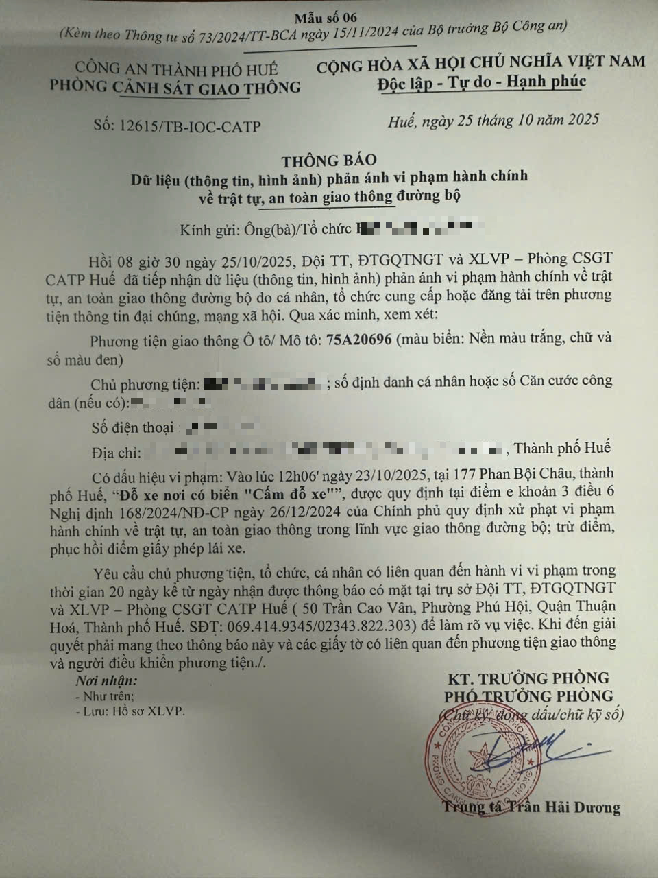Vấn đề quý Ông/Bà phản ánh, Phòng Cảnh sát giao thông – Công an thành phố Huế đã kiểm tra và xin thông báo kết quả như sau: