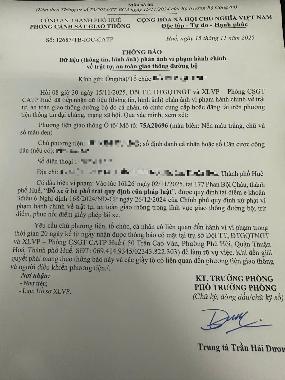 Vấn đề quý Ông/Bà phản ánh, Phòng Cảnh sát giao thông – Công an thành phố Huế đã kiểm tra và xin thông báo kết quả như sau: