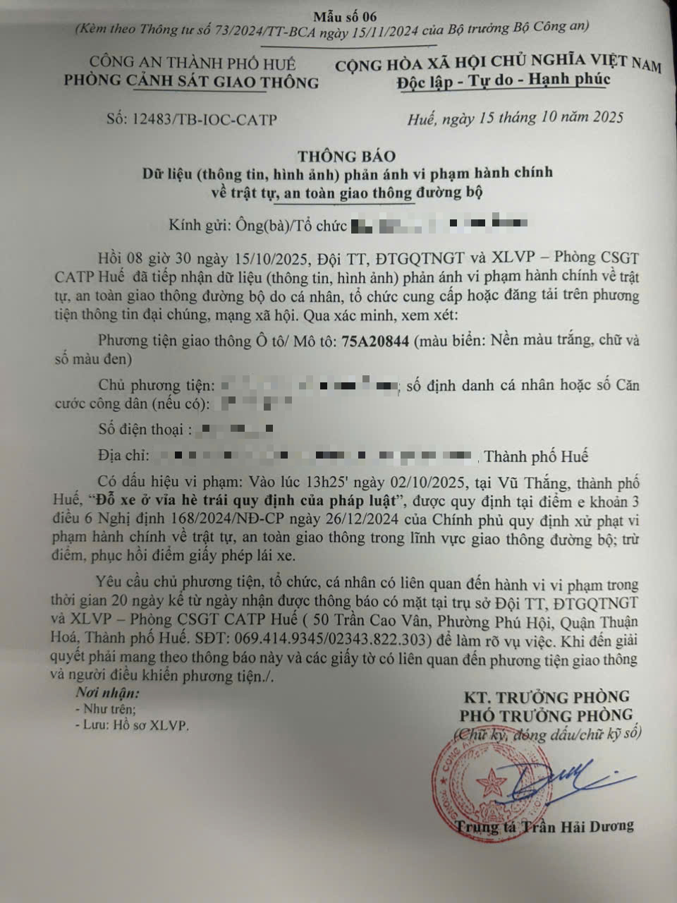 Vấn đề quý Ông/Bà phản ánh, Phòng Cảnh sát giao thông – Công an thành phố Huế đã kiểm tra và xin thông báo kết quả như sau: