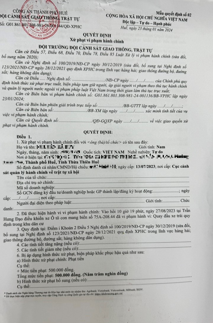 Công an thành phố cập nhật Quyết định xử phạt.
