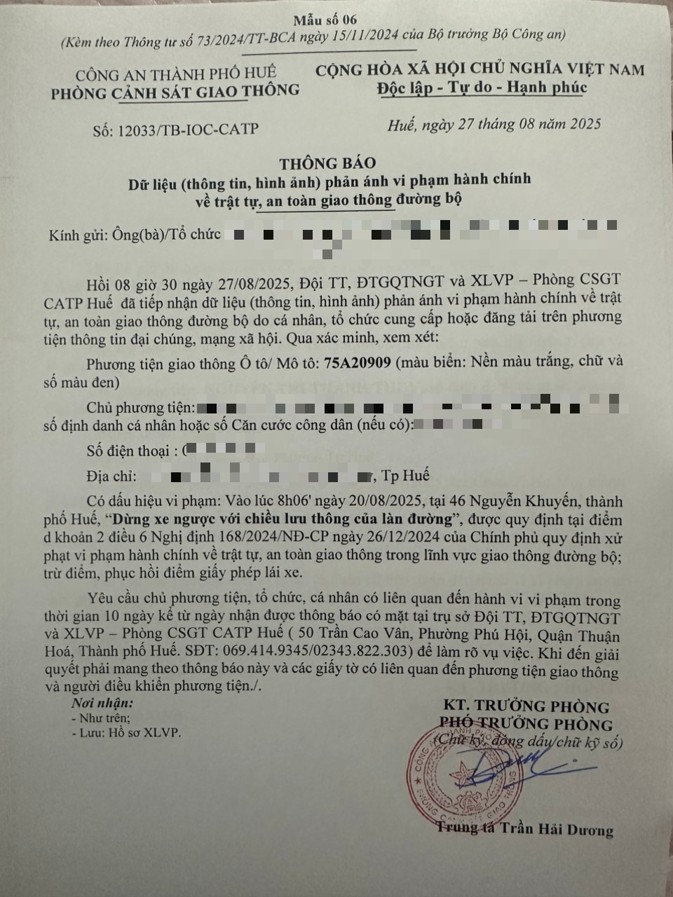 Vấn đề quý Ông/Bà phản ánh, Phòng Cảnh sát giao thông – Công an thành phố Huế đã kiểm tra và xin thông báo kết quả như sau: