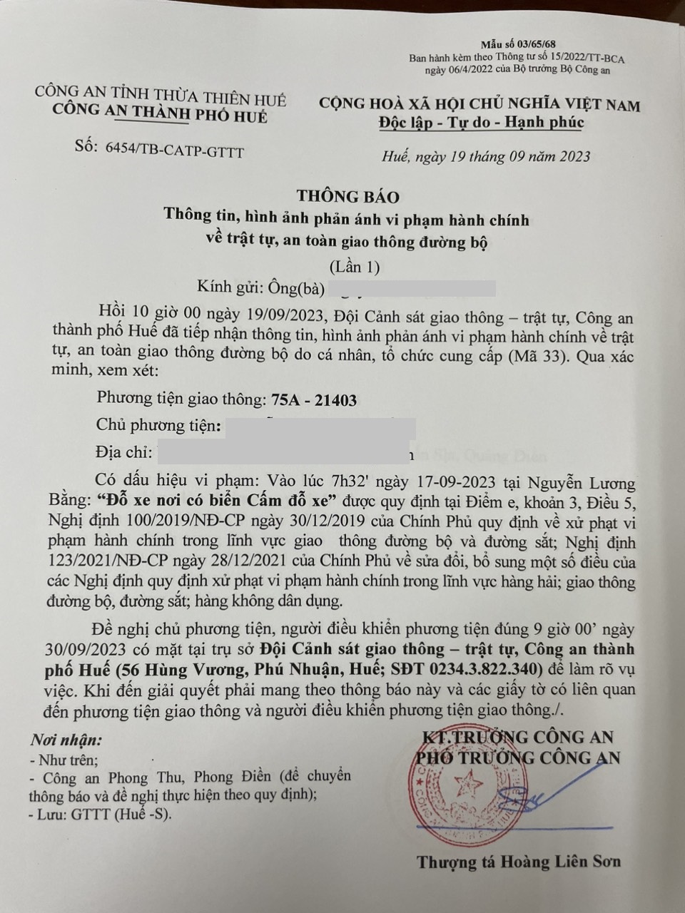 Vấn đề quý Ông/Bà phản ánh, Công an tỉnh đã chỉ đạo Công an thành phố Huế kiểm tra và xin thông báo kết quả như sau: