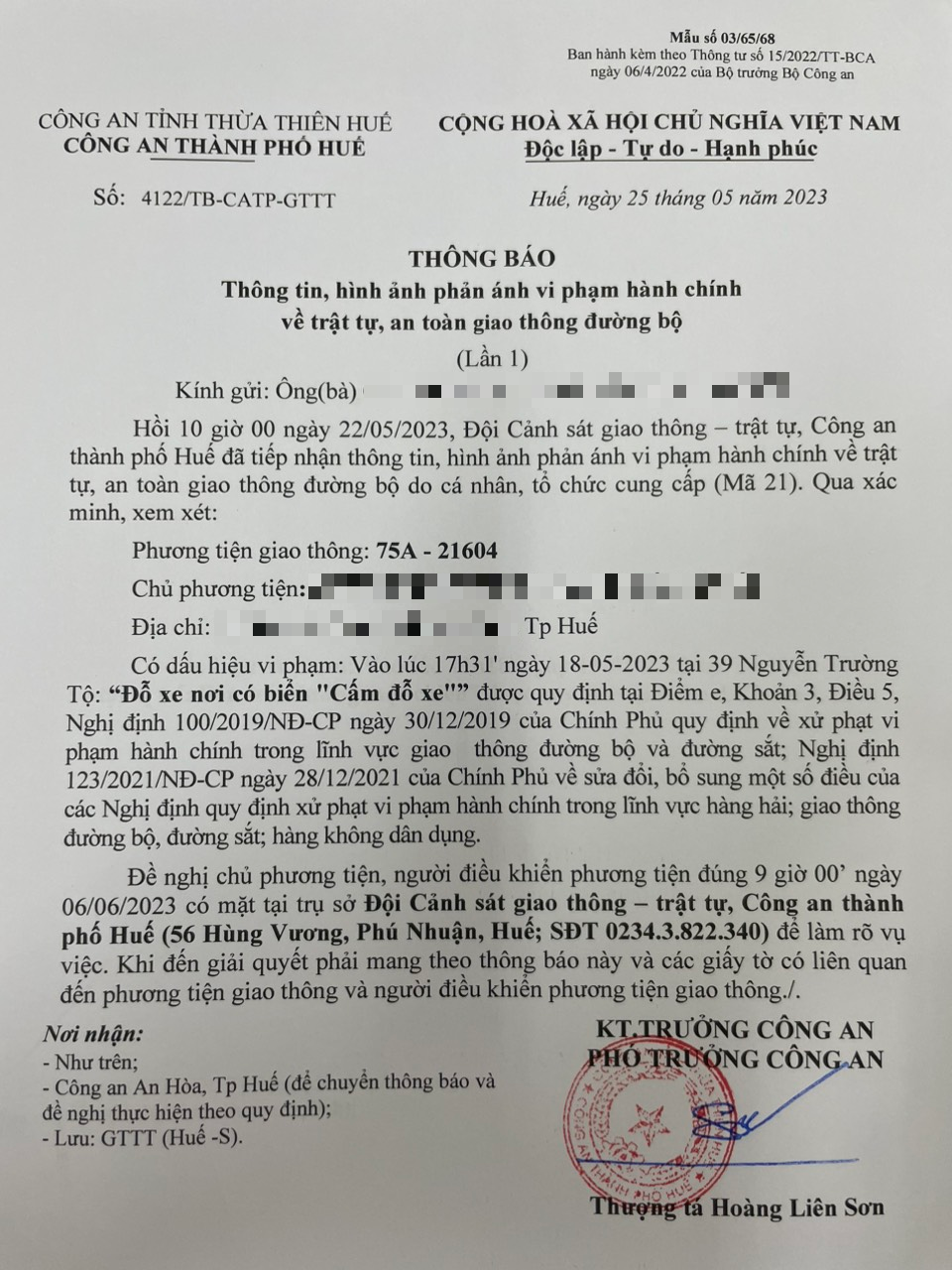 Công an thành phố cập nhật: Quyết định xử phạt. (Đính kèm QĐ)