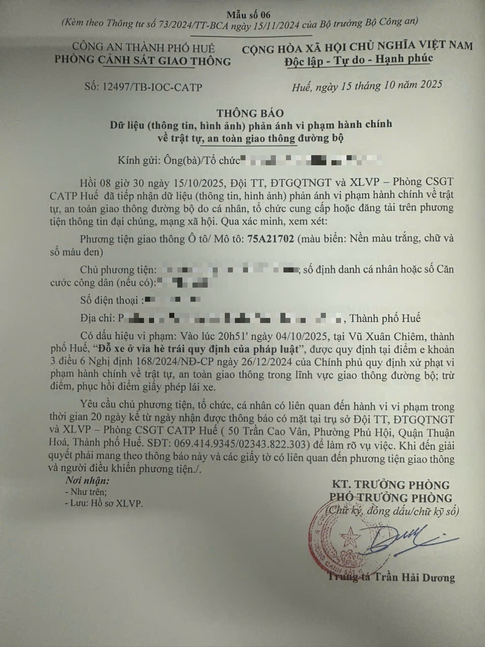 Vấn đề quý Ông/Bà phản ánh, Phòng Cảnh sát giao thông – Công an thành phố Huế đã kiểm tra và xin thông báo kết quả như sau:
