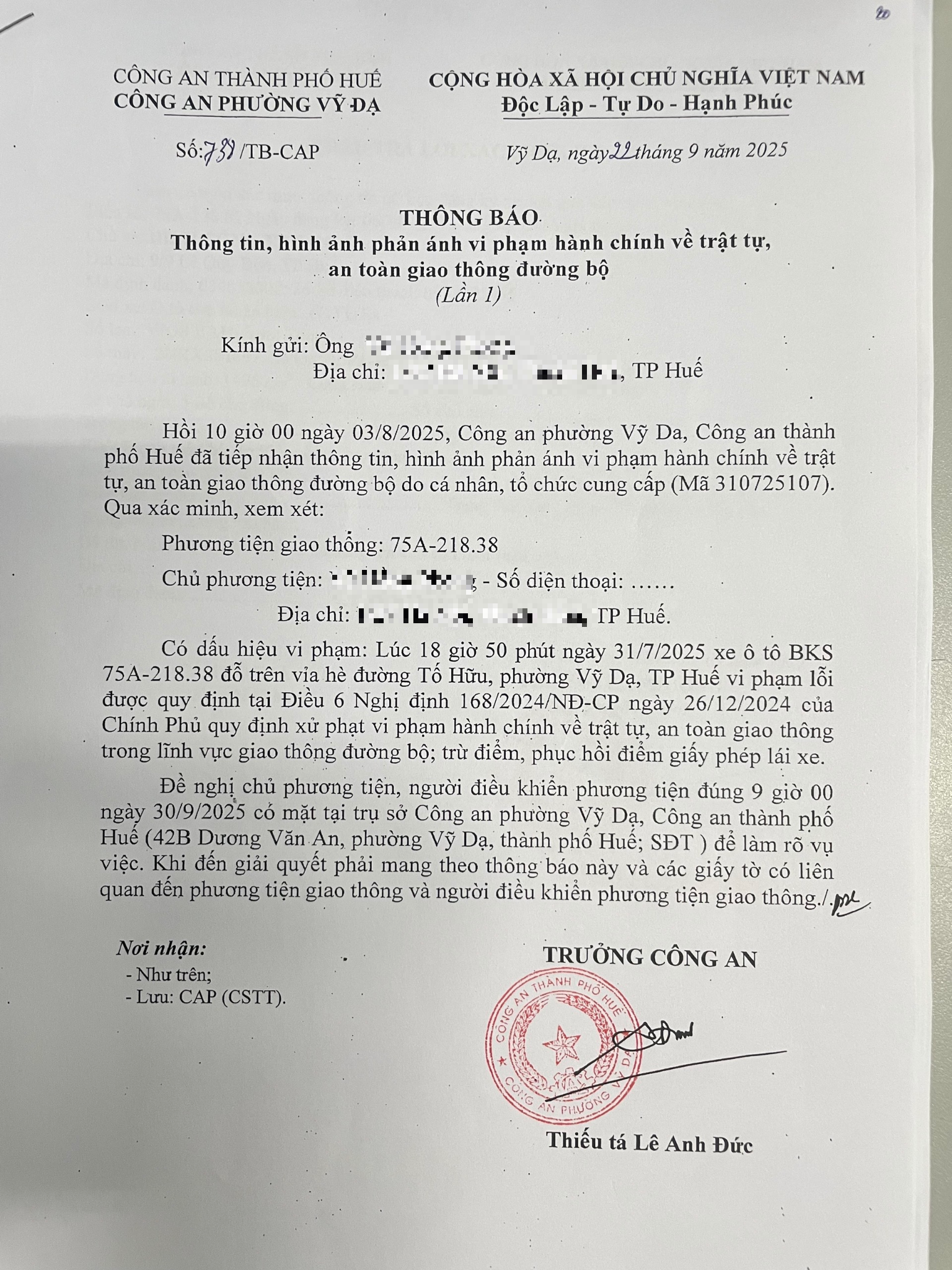 Vấn đề quý Ông/Bà phản ánh, Công an thành phố Huế đã chỉ đạo Công an phường Vỹ Dạ kiểm tra và xin thông báo kết quả như sau:
